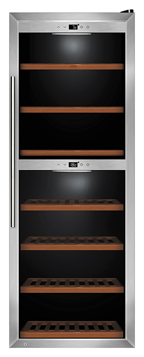 Винный шкаф CASO WineComfort 1260 Smart предназначен для охлаждения и длительного хранения бутилированного и разливного вина в частных домах, квартирах, отелях и офисах. Модель оснащена 2 температурными зонами для красного и белого вина с активным вентилятором в каждой, сенсорной панелью управления с возможностью удаленного управления через приложение Wi-Fi Smart Control и 7 деревянными съемными полками на подшипниках. Дверная рама и ручка выполнены из нержавеющей стали, дверца - из трехслойного изолирующего стекла с УФ-фильтром. Особенности: