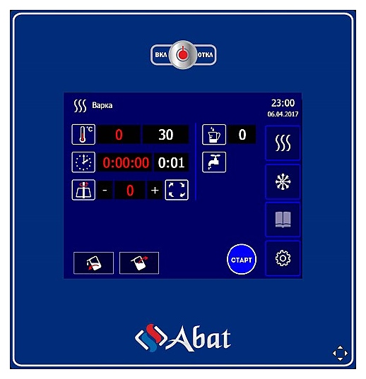 Варочный котел Abat КПЭМ-200-ОМП с функциями опрокидывания, перемешивания и охлаждения предназначен для приготовления вторых и третьих блюд, бульонов, соусов и десертов, а также для кипячения воды на предприятиях пищевой промышленности и общественного питания. Модель оснащена панелью управления с электронным TFT-экраном, пультом программного управления и сливным краном, позволяющим производить слив готового продукта без опрокидывания. Конструкция выполнена из аустенитной нержавеющей стали AISI 304, варочный сосуд - из кислотостойкой нержавеющей стали марки AISI 316. В комплект поставки входит монтажная бетонируемая в пол рама. Режимы работы котла: