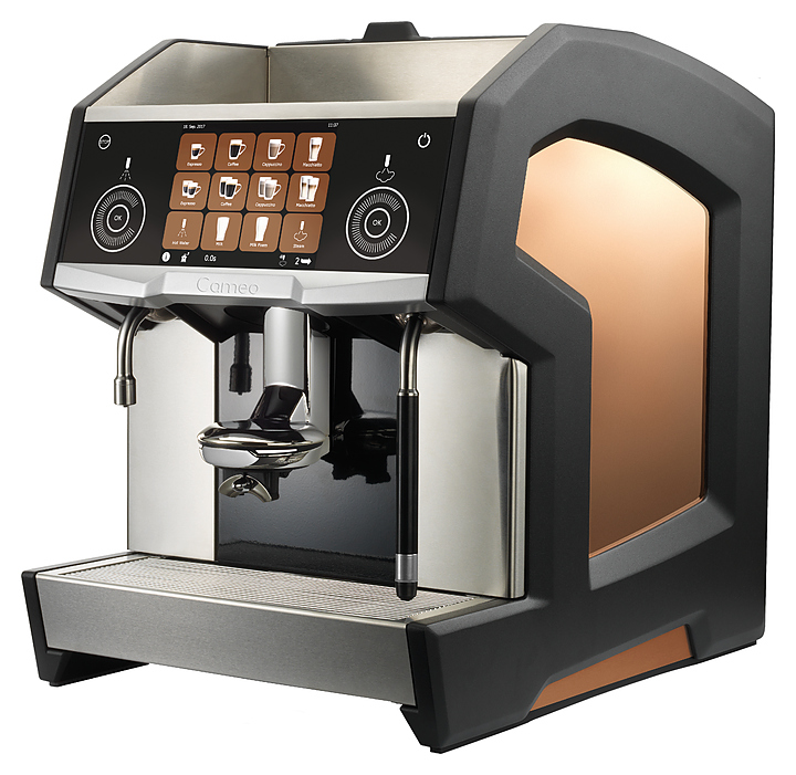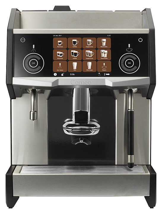 Кофемашина Eversys Сameo c'2 mcts используется на предприятиях общественного питания для приготовления кофе эспрессо и капучино. Модель оснащена сенсорным управлением, керамическими жерновами, мощным и тихим мотором и системой вентиляторов, позволяющих отводить тепло от кофейных зерен. Полностью автоматическая система позволяет приготовить кофе такого же высокого качества, как при ручном приготовлении профессионалом. Бойлер выполнен из стали, шланг - из нержавеющей стали. Особенности: