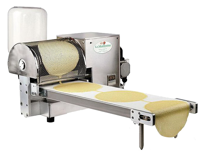 Блинный автомат La Monferrina C1 используется на предприятиях общественного питания для формования и выпекания блинов прямоугольной формы. Модель оснащена панелью управления с цифровым дисплеем для контроля температуры барабана. Корпус и детали, контактирующие с тестом, выполнены из нержавеющей стали, барабан - из легированной стали. Особенности: