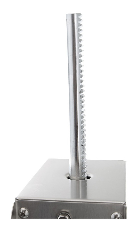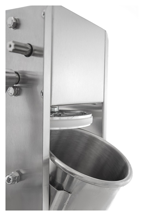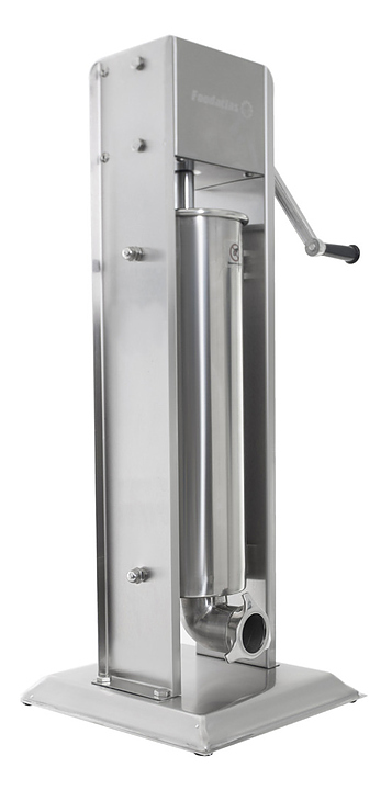 Шприц для колбас Foodatlas VS-7L используется на предприятиях общественного питания и торговли для наполнения колбас, сосисок, сарделек и шпикачек. Модель оснащена ручным управлением и имеет вертикальное исполнение. Корпус выполнен из нержавеющей стали 304. В комплект поставки входят 4 иглы: Ø 16, 22, 32 и 38 мм. Особенности: