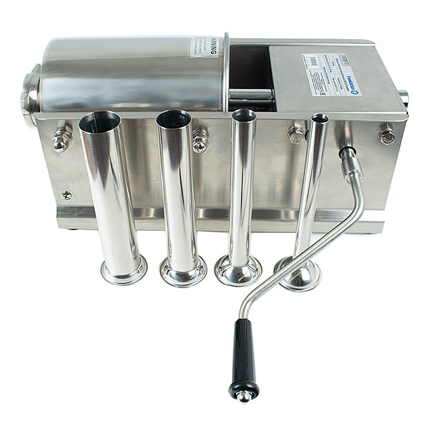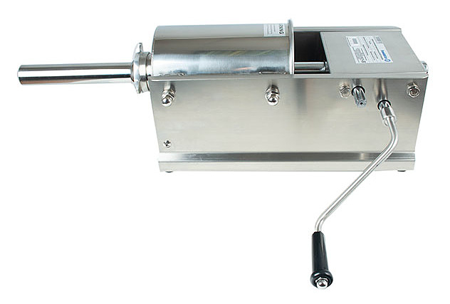 Шприц для колбас Foodatlas HS-3L используется на предприятиях общественного питания и торговли для наполнения колбас, сосисок, сарделек и шпикачек. Модель оснащена ручным управлением и имеет горизонтальное исполнение. Корпус выполнен из нержавеющей стали 304. В комплект поставки входят 4 иглы: Ø 16, 22, 32 и 38 мм. Особенности: