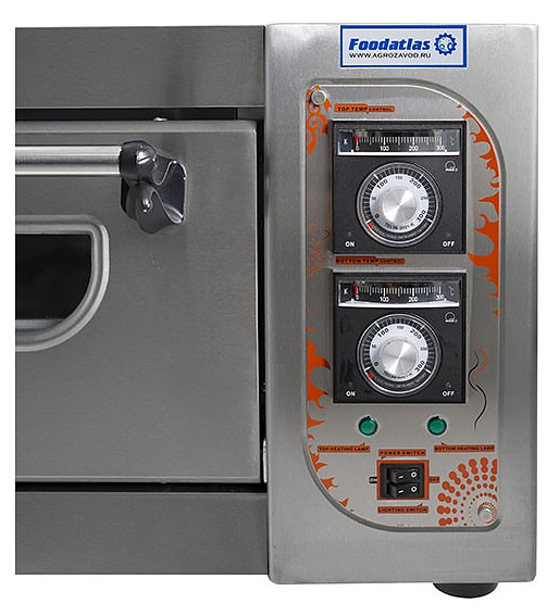 Хлебопекарная печь Foodatlas VH-12 используется на предприятиях общественного питания и торговли для выпечки широкого ассортимента хлебобулочных и кондитерских изделий, приготовления мясных, рыбных, овощных и других блюд. Модель оснащена панелью управления с 2 реле для регулировки температуры верхнего и нижнего ТЭНов, внутренней лампой и дверью со смотровым окном, позволяющим контролировать рабочий процесс. Корпус выполнен из нержавеющей стали, дверь - из металла и стекла. Дополнительные характеристики: