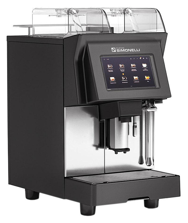 Суперавтоматическая заливная кофемашина Nuova Simonelli Prontobar Touch заливного типа с возможностью подключения к водопроводу используется на предприятиях общественного питания и в офисах для приготовления кофе эспрессо, капучино, ристретто, лунго, макиато и других кофейных напитков с молоком. Модель оснащена одной съёмной регулируемой термокомпенсированной группой, двумя встроенными кофемолками, двумя бойлерами, паровым краном и краном для подачи горячей воды. Аппарат осуществляет автоматическую дозацию напитка, подачу горячей воды и пара. Группа изготовлена из литого алюминия и нержавеющей стали, паровой кран и бойлеры – из нержавеющей стали, корпус – из нержавеющей стали со вставками чёрного ABS-пластика. Особенности: