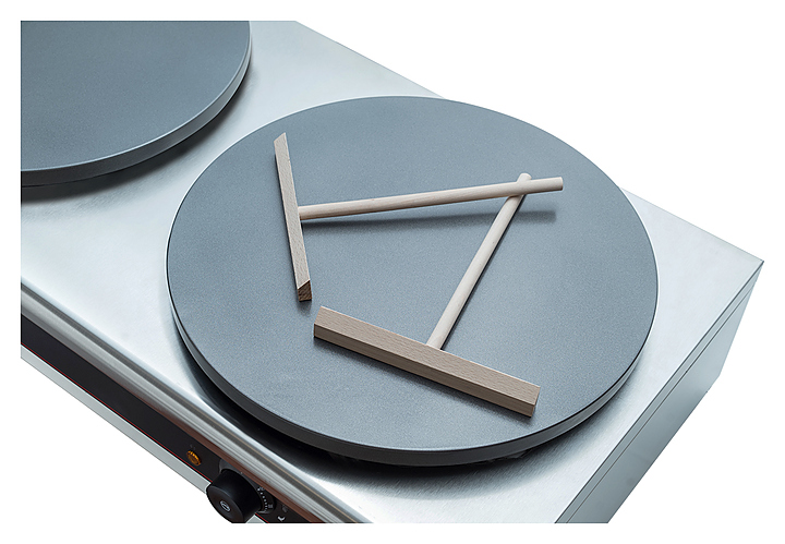 Блинница Crazy Pan CP-CM400D используется на предприятиях общественного питания и торговли. Модель оснащена терморегулятором. Модель оснащена 2 Т-образными лопатками, 2 ТЭНами и поддоном. Корпус выполнен из нержавеющей стали, жарочных поверхности - из чугуна с антипригарным покрытием. Дополнительные характеристики: