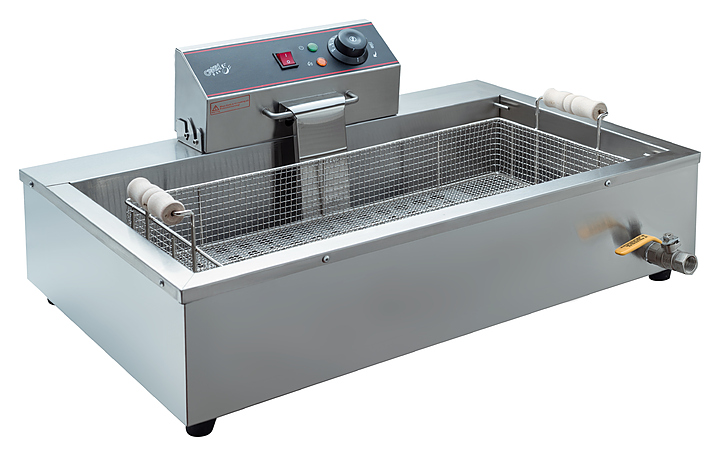 Чебуречница Crazy Pan CP-BEF16 предназначена для приготовления чебуреков и других блюд на предприятиях общественного питания и торговли. Модель оснащена терморегулятором, боковым поддоном, объемной съемной корзиной и шипцами. Корпус выполнен из нержавеющей стали. Особенности: