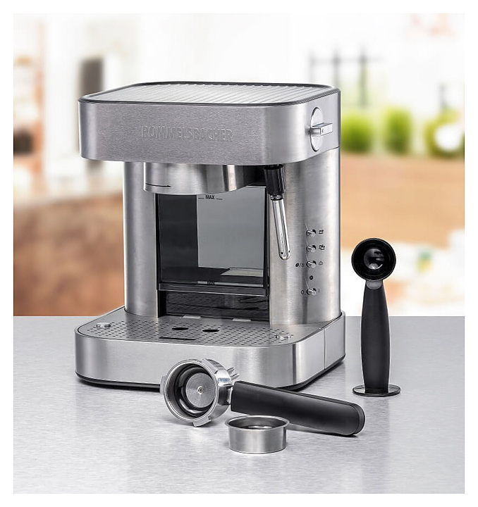 Кофеварка Rommelsbacher EKS 2010 используется в квартирах, частных домах, кафе и ресторанах. Модель оснащена функцией энергосбережения (включается через 10 минут ожидания), функцией предварительного заваривания и высококачественным насосом ULKA (Италия). Корпус, капучинатор и фильтр-вставки выполнены из нержавеющей стали, термоблок и портафильтр - из литого алюминия. Прибор имеет cтильный современный дизайн, удобен и прост в использовании. В комплект поставки входят фильтр-вставки на 1 и 2 чашки, сменный фильтр для воды и мерная ложка с темпером. Особенности: