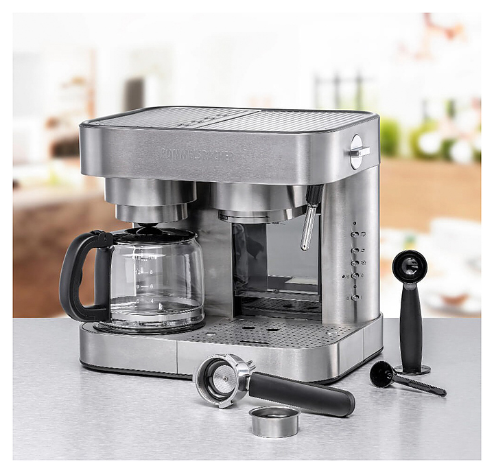 Кофеварка Rommelsbacher EKS 3010 используется в квартирах, частных домах, кафе и ресторанах. Модель оснащена функцией предварительного заваривания и высококачественным насосом ULKA (Италия). Корпус, капучинатор и фильтр-вставки выполнены из нержавеющей стали, термоблок и портафильтр - из литого алюминия. Прибор имеет cтильный современный дизайн, удобен и прост в использовании. В комплект поставки входят фильтр-вставки на 1 и 2 чашки, сменный фильтр для воды и мерная ложка с темпером. Особенности:
