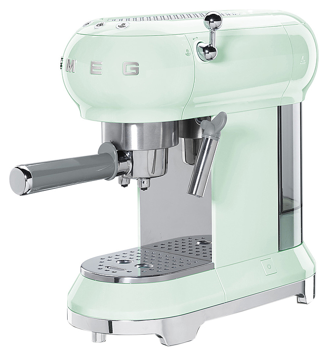 Кофемашина Smeg ECF01PGEU предназначена для приготовления эспрессо и кофейных напитков на его основе в частных домах и квартирах. Модель выполнена в стиле 50-х годов. Корпус изготовлен из окрашенного металла и цветного пластика, основание - из хромированного пластика, держатель фильтра, рамка, капучинатор и поддон для чашек - из нержавеющей стали. Комплектация:
