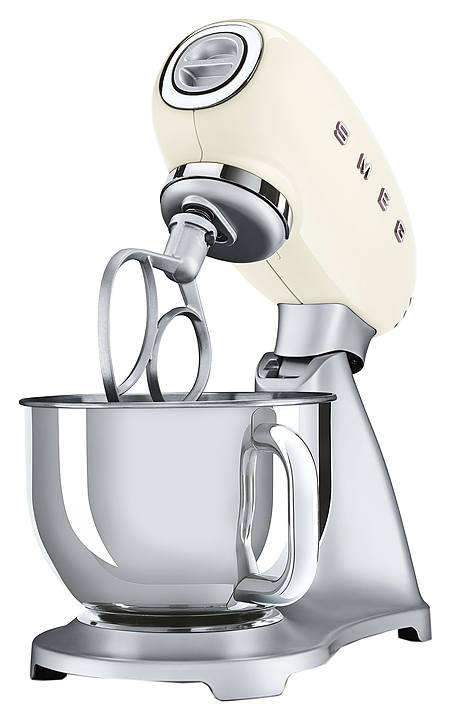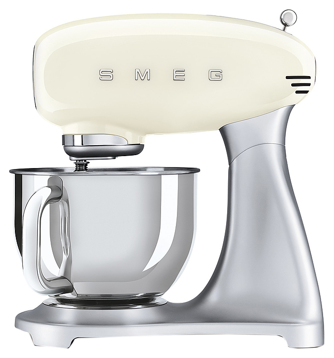 Планетарный миксер Smeg SMF02CREU предназначен для взбивания кремов, муссов, а также для приготовления пюре, соусов и коктейлей в частных домах и квартирах. Модель выполнена в стиле 50-х годов. Корпус изготовлен из литого алюминия, шестеренки - из закаленной стали. Комплектация: