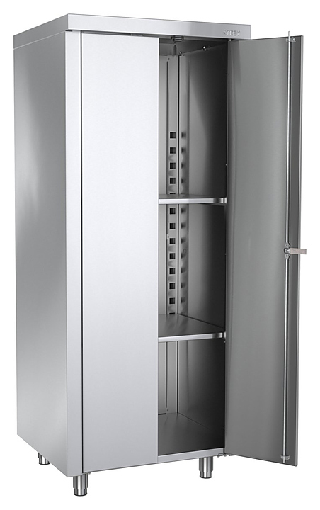 Кухонный шкаф ATESY ШЗК-С-700.600-02-Р серии Стандарт используется на предприятиях общественного питания и торговли для хранения столовой и кухонной посуды и инвентаря, а также продуктов питания, не требующих особых условий хранения. Модель оснащена распашными дверями с замком. Изделие полностью выполнено из нержавеющей стали AISI 430. Дополнительные характеристики: