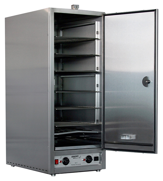 Печь-коптильня Sikom КР-7.150 используется на предприятиях общественного питания и торговли, а также в производственных цехах, деятельность которых связана с выпуском гастрономических товаров, для производства продуктов горячего и холодного копчения. Корпус выполнен из нержавеющей стали. В комплект поставки входят: