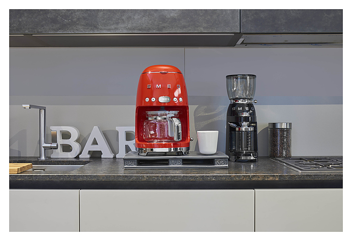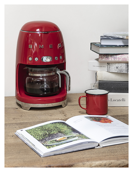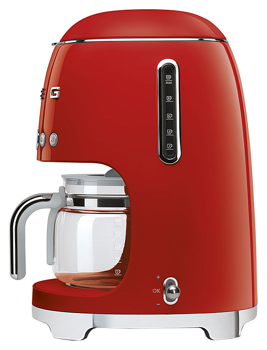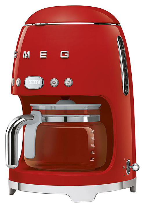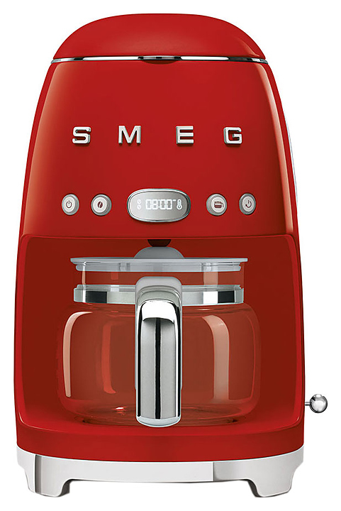 Кофеварка Smeg DCF02RDEU предназначена для приготовления кофейных напитков в частных домах и квартирах. Модель выполнена в стиле 50-х годов. Корпус изготовлен из окрашенного металла. В комплект поставки входят стеклянный кувшин для кофе на 10 чашек с ручкой и крышкой, многоразовый фильтр с ручкой и мерная ложка для молотого кофе. Особенности: