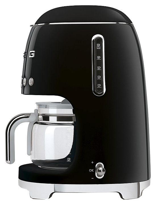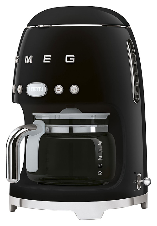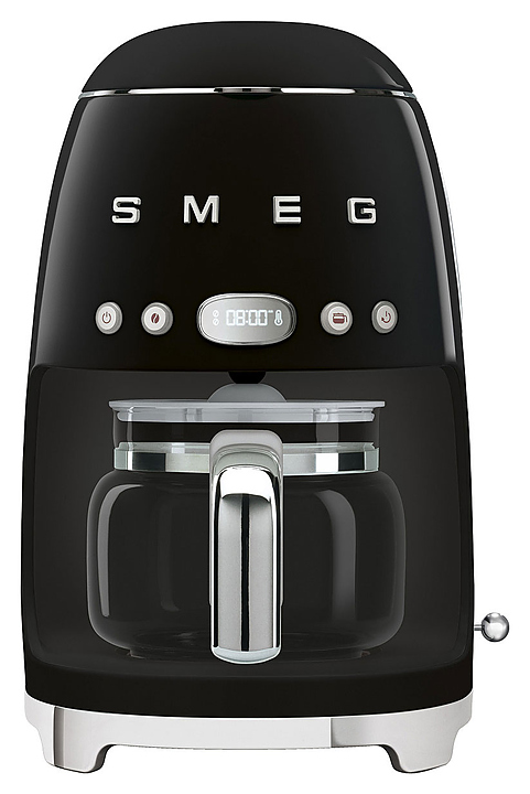 Кофеварка Smeg DCF02RDEU предназначена для приготовления кофейных напитков в частных домах и квартирах. Модель выполнена в стиле 50-х годов. Корпус изготовлен из окрашенного металла. В комплект поставки входят стеклянный кувшин для кофе на 10 чашек с ручкой и крышкой, многоразовый фильтр с ручкой и мерная ложка для молотого кофе. Особенности: