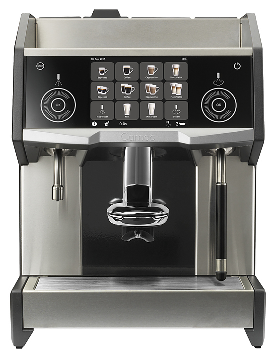Кофемашина Eversys Сameo c'2 mcts используется на предприятиях общественного питания для приготовления кофе эспрессо и капучино. Модель оснащена сенсорным управлением, керамическими жерновами, мощным и тихим мотором и системой вентиляторов, позволяющих отводить тепло от кофейных зерен. Полностью автоматическая система позволяет приготовить кофе такого же высокого качества, как при ручном приготовлении профессионалом. Бойлер выполнен из стали, шланг - из нержавеющей стали. Особенности: