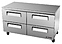 Холодильный стол Turbo air CMUR-60-2D-4 предназначен для раскатки теста, обработки, охлаждения и кратковременного хранения продуктов и напитков на предприятиях общественного питания и торговли. Корпус выполнен из нержавеющей стали (гальванизированная сталь на оборотной стороне и внизу) с применением пожаробезопасных стенок толщиной 60 мм, уплотнения - из АБС-пластика, пол - из нержавеющей стали с алюминиевыми вставками по бокам и сзади оборудования, регулируемые полки - из толстой стальной проволоки с виниловым покрытием, тройные направляющие - из высококачественной нержавеющей стали. Особенности: