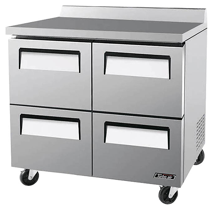 Холодильный стол Turbo air CMWR-36-2D-4 предназначен для раскатки теста, обработки, охлаждения и кратковременного хранения продуктов и напитков на предприятиях общественного питания и торговли. Корпус выполнен из нержавеющей стали (гальванизированная сталь на оборотной стороне и внизу) с применением пожаробезопасных стенок толщиной 60 мм, уплотнения - из АБС-пластика, пол - из нержавеющей стали с алюминиевыми вставками по бокам и сзади оборудования, регулируемые полки - из толстой стальной проволоки с виниловым покрытием, тройные направляющие - из высококачественной нержавеющей стали. Особенности: