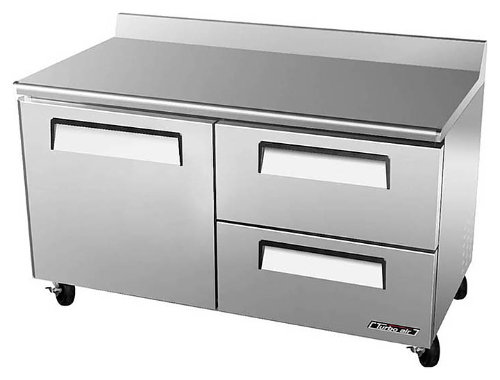 Холодильный стол Turbo air CMWR-60-2D-2 предназначен для раскатки теста, обработки, охлаждения и кратковременного хранения продуктов и напитков на предприятиях общественного питания и торговли. Корпус выполнен из нержавеющей стали (гальванизированная сталь на оборотной стороне и внизу) с применением пожаробезопасных стенок толщиной 60 мм, уплотнения - из АБС-пластика, пол - из нержавеющей стали с алюминиевыми вставками по бокам и сзади оборудования, регулируемые полки - из толстой стальной проволоки с виниловым покрытием, тройные направляющие - из высококачественной нержавеющей стали. Особенности: