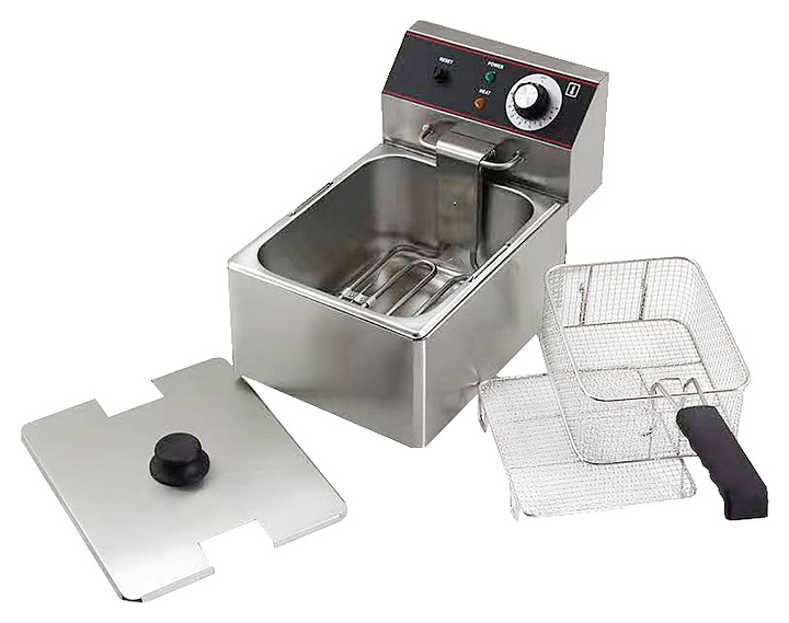 Фритюрница Kocateq EF81NW предназначена для приготовления различных продуктов в большом количестве масла или жира на предприятиях общественного питания и торговли. Модель оснащена панелью управления, термостатом для регулировки температуры и защитным термостатом, автоматически отключающим напряжение при повреждении основного термостата. Корпус выполнен из нержавеющей стали AISI 201 толщиной 0,55 мм, ванна - из нержавеющей стали AISI 201 толщиной 0,7 мм. В комплекте поставки входит корзина 185х240х140 мм из стали с большой термоизолированной ручкой и крюком для фиксирования корзины в верхнем положении над емкостью. Особенности:
