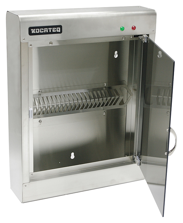Стерилизатор для ножей Kocateq DH25KS используется на предприятиях общественного питания и торговли. Модель оснащена ультрафиолетовой обработкой, которая не разрушает структуру материала и препятствует распространению микроорганизмов, и таймером на 60 минут. Корпус выполнен из нержавеющей стали AISI 201 толщиной 0,8 мм. Особенности: