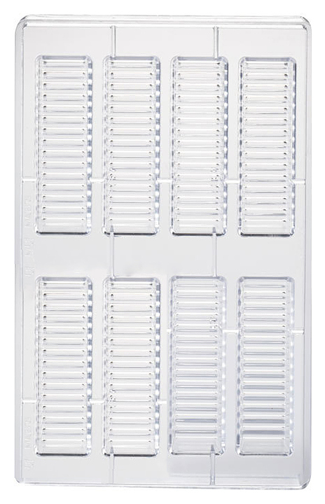 Форма для конфет Martellato MA1916 используется на предприятиях общественного питания и торговли, в частных домах и квартирах. Модель позволяет производить шоколадные плитки. Аксессуар выполнен из поликарбоната. Дополнительные характеристики::