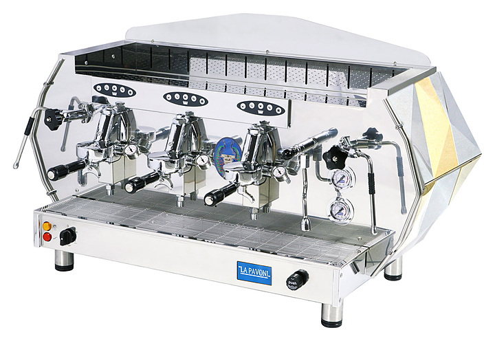Кофемашина La Pavoni DIA3SV1619EU серии DIAMANTE используется на предприятиях общественного питания и торговли, в офисах, а также в домашних условиях для приготовления чая, кофе и кофейных напитков. Модель оснащена 3 литыми хромированными латунными группами с вертикальной инфузионной камерой. Бойлер выполнен из меди. В комплект поставки входят 4 холдера: 1 с одним носиком и 3 с двумя носиками. Особенности: