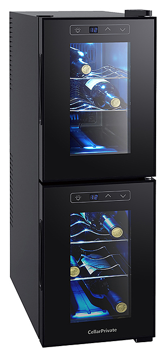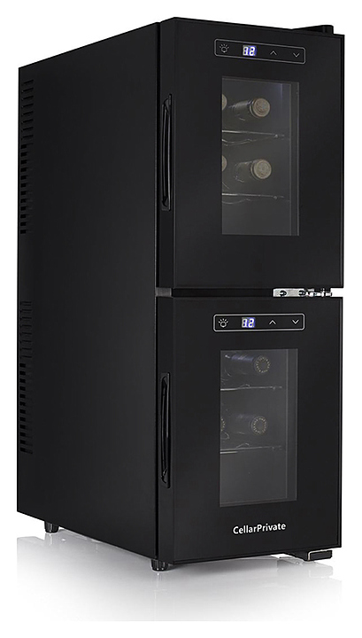 Винный шкаф Cellar Private CP012-2E создает оптимальные условия для сохранения всех вкусовых свойств разливного вина в барах, ресторанах, специализированных магазинах, частных домах или квартирах. Модель оснащена светодиодной подсветкой мягкого синего цвета. Корпус выполнен из окрашенного металла, дверь - из двойного тонированного стеклопакета с УФ-фильтром в пластиковой рамке, полки - из хромированного металла. Особенности: