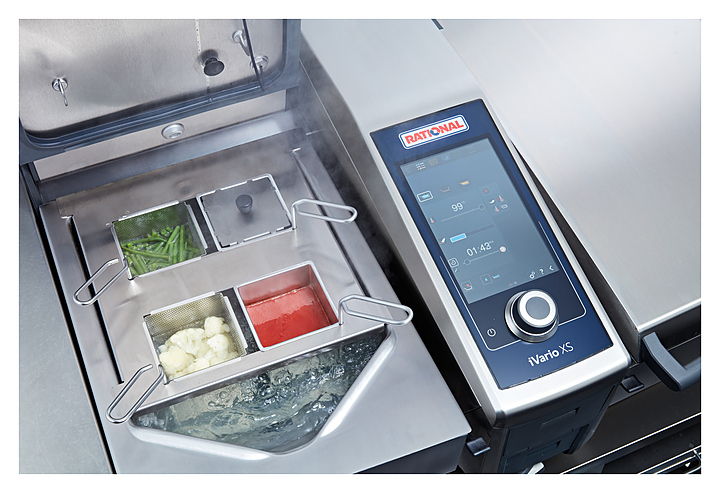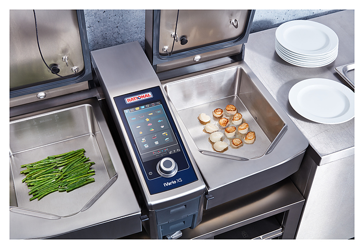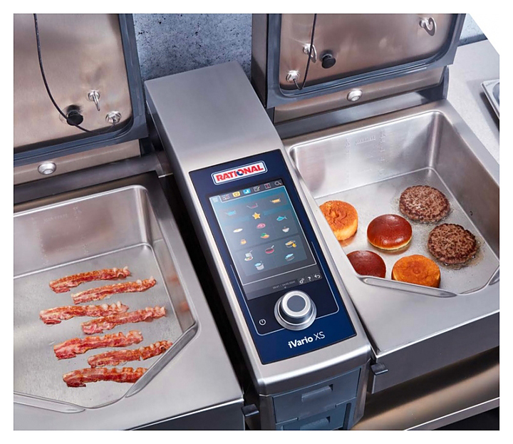 Универсальный кухонный аппарат Rational iVario 2-XS предназначен для приготовления широкого спектра блюд путем жарки, варки, тушения и обжаривания во фритюре с частичным контролем со стороны повара. Такое оборудование может легко заменить собой опрокидывающиеся сковороды, котлы и фритюрницы или дополнить "тепловой остров". Модель оснащена цветным сенсорным дисплеем и поворотным регулятором.