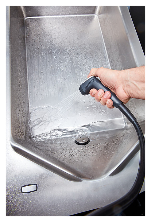 Встроенный слив воды избавляет от необходимости размещать сток в полу