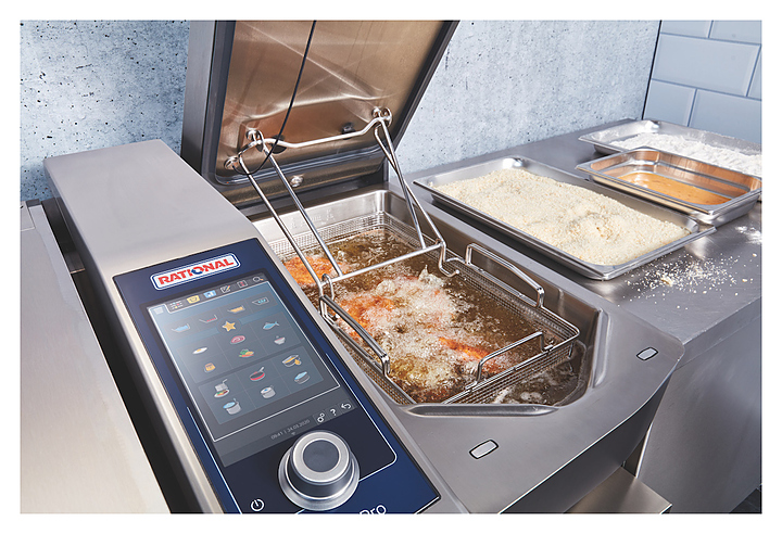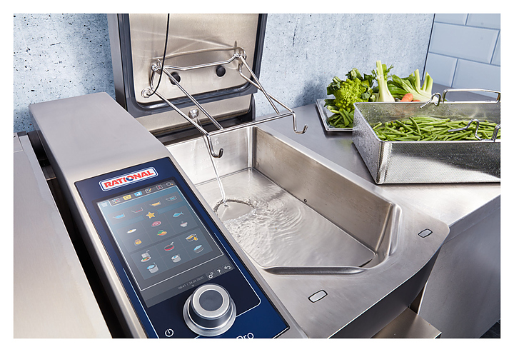 Универсальный кухонный аппарат Rational iVario Pro 2-S предназначен для приготовления широкого спектра блюд путем жарки, варки, тушения, обжаривания во фритюре и готовки под давлением и в вакууме с частичным контролем со стороны повара. Такое оборудование может легко заменить собой опрокидывающиеся сковороды, котлы и фритюрницы или дополнить "тепловой остров". Модель оснащена цветным сенсорным дисплеем и поворотным регулятором.