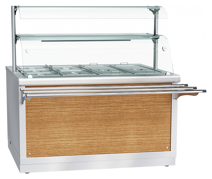 Мармит Abat ЭМК-70Х-03 используется в составе линии раздачи HOT-LINE на предприятиях общественного питания и торговли для поддержания в горячем состоянии вторых блюд в функциональных емкостях и их раздачи потребителю. Модель оснащена 3 ТЭНами и ванной с гастроемкостями для продуктов и готовых блюд. Корпус и панели выполнены из нержавеющей стали. В комплект поставки входят 2 гастроемкости GN 1/1, 2 гастроемкости GN 1/2, 3 гастроемкости GN 1/3 и направляющая. Особенности: