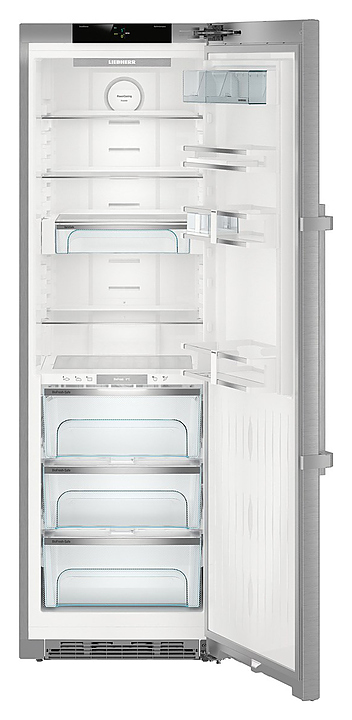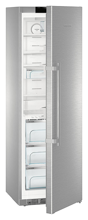 Холодильник Liebherr SKBes 4370 класса Premium предназначен для охлаждения и кратковременного хранения продуктов, полуфабрикатов и напитков в частных домах, квартирах, отелях и офисах. Модель оснащена сенсорным цветным TFT-дисплеем с высоким разрешением, установленным за дверью и позволяющим осуществлять интуитивно понятную настройку температуры. Боковые стенки выполнены из легированной стали с покрытием SmartSteel, дверь - из нержавеющей стали с покрытием SmartSteel, ручка - из алюминия.