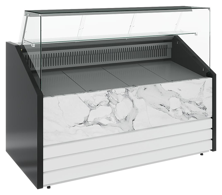 Холодильная витрина Carboma GC75 VV 1,0-1 используется на предприятиях общественного питания и торговли для охлаждения, кратковременного хранения, демонстрации и продажи продуктов питания, салатов, молочных и других гастрономических изделий. Модель оснащена регулируемыми ножками высотой от 20 до 35 мм. Столешница, зона выкладки, боковые и нижняя фронтальная панели, обшивка светильника и испарителя выполнены из окрашенной стали, декоративная передняя панель - из окрашенной стали или паттерна, держатель стекла - из нержавеющей стали. Боковины и столешница покрыты пенополиуретановой теплоизоляцией. Особенности: