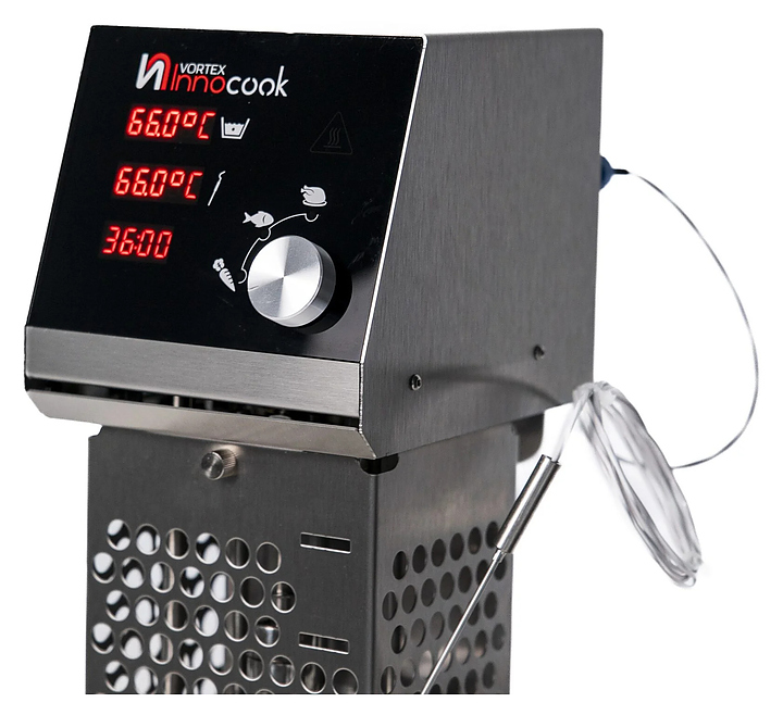Ротационный кипятильник InnoCook Vortex предназначен для приготовления широкого спектра блюд по технологии Sous Vide на предприятиях общественного питания и торговли. Модель оснащена электромеханической панелью управления. Корпус полностью выполнен из пищевой нержавеющей стали. В комплект поставки входит термощуп. Особенности: