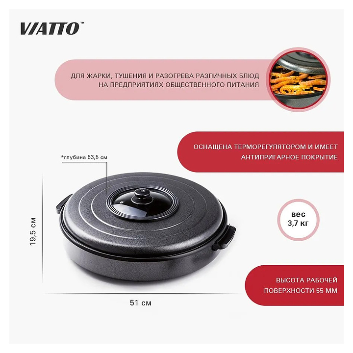 Электрическая сковорода VIATTO VA-CPP46 предназначена для приготовления пиццы, а также жарки, тушения и разогрева широкого блюд на предприятиях общественного питания и торговли. Модель оснащена терморегулятором и имеет антипригарное покрытие. Внимание! Информация о товарах, размещенная на сайте, не является публичной офертой, определяемой положениями Части 2 Статьи 437 Гражданского кодекса Российской Федерации. Производители вправе вносить изменения в технические характеристики, внешний вид и комплектацию товаров без предварительного уведомления. Уточняйте характеристики у наших менеджеров перед оформлением заказа. |
