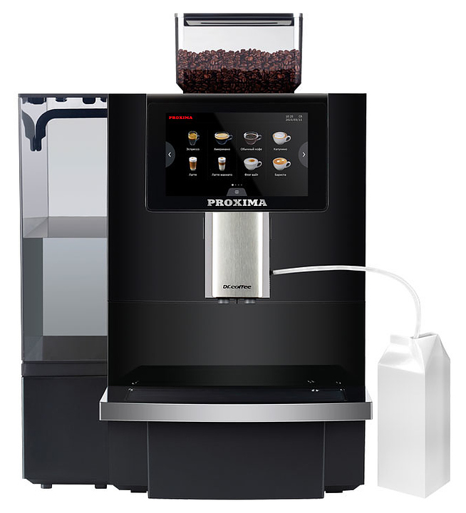 Кофемашина Dr.coffee Proxima F11 Big Plus используется на предприятиях общественного питания и торговли, в офисах, а также в домашних условиях для приготовления кофе и кофейных напитков. Модель оснащена графическим сенсорным дисплеем с блокировкой функции изменения параметров напитков для пользовательского меню. Жернова кофемолки выполнены из керамики, бойлер - из алюминия, контейнеры, каплесборник, заварное устройство - из пластика. В комплект поставки входят молочная трубка, кабель, трубка для подачи воды, гаечный ключ для настройки степени помола. Особенности: