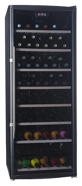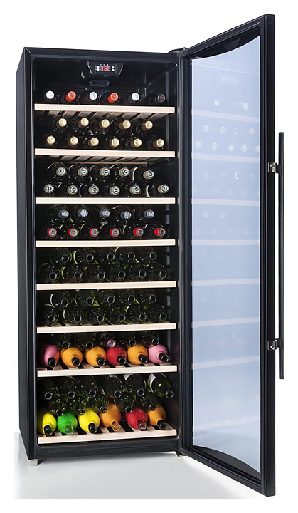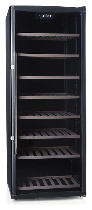 Винный шкаф Cavanova TW100T создает оптимальные условия для сохранения всех вкусовых свойств разливного вина в барах, ресторанах, специализированных магазинах, частных домах или квартирах. Модель оснащена внутренней светодиодной подсветкой. Дверь выполнена из тройного тонированного изогнутого стекла с защитой от УФ-лучей в рамке черного цвета, полки - из дерева. Особенности: