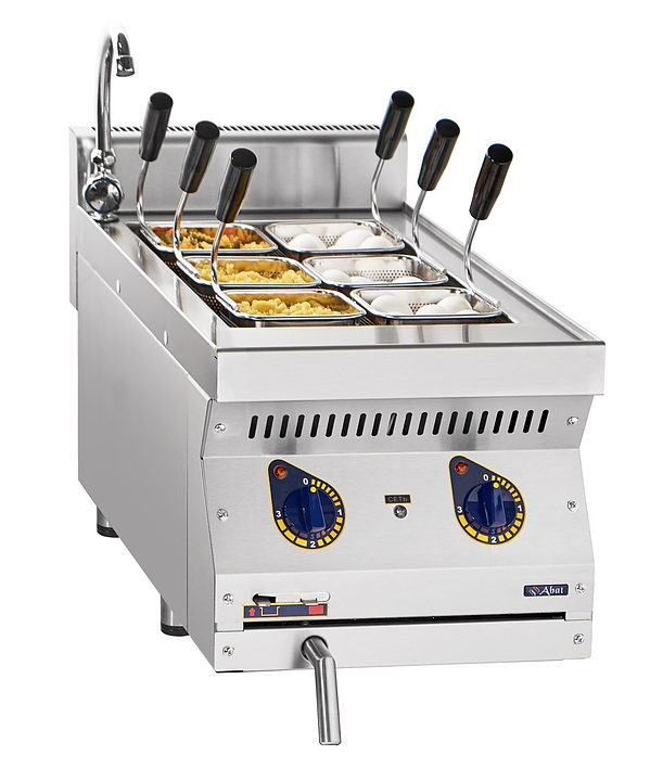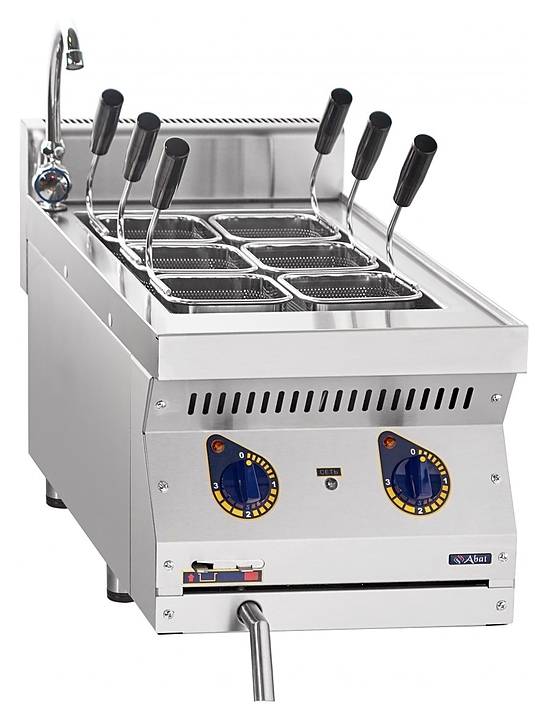 Электроварка Abat ЭВК-40/1Н предназначена для варки всех видов макаронных изделий, пельменей, вареников, овощей, корнеплодов и яиц на предприятиях общественного питания и торговли. Модель оснащена регулируемыми по высоте ножками. Корпус выполнен из нержавеющей стали. Дополнительные характеристики: