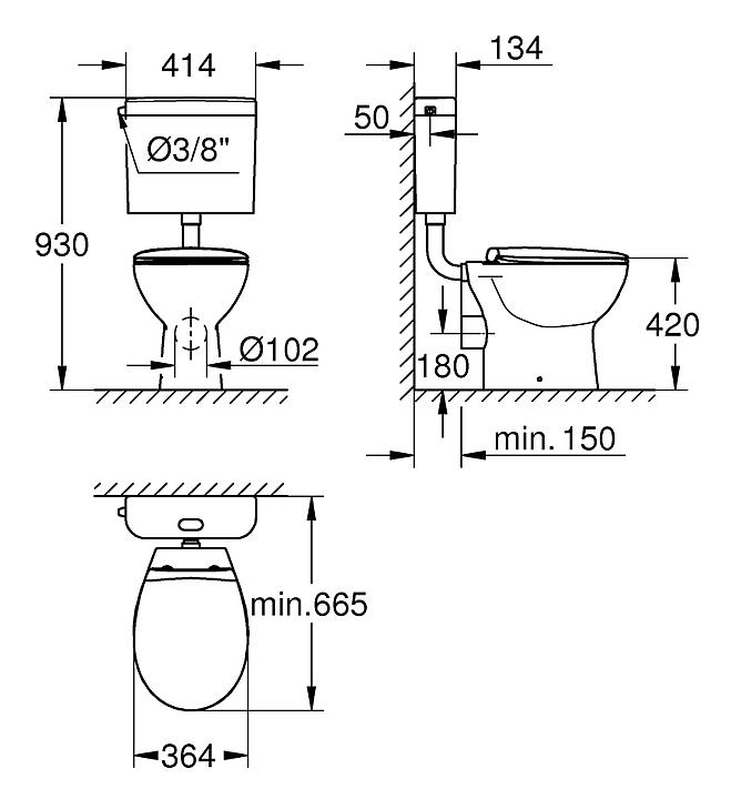 Унитаз напольный с бачком Grohe Bau Ceramic 39560000Gr