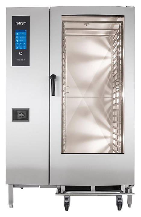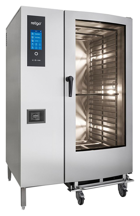 Пароконвектомат Retigo B2021IG VISION II серии Blue Vision II предназначен для обжаривания, приготовления на пару, бланширования, запекания и других видов тепловой обработки продуктов на фабриках-кухнях, предприятиях общественного питания и торговли. Оборудование заменяет сразу несколько видов приборов: плиту, конвекционную печь, жарочный шкаф, духовку, опрокидывающуюся сковороду, пищеварочный котел и фритюрницу. Приготовленные в пароконвектомате блюда сохраняют все полезные вещества. Модель оснащена сенсорной панелью управления и цифровым дисплеем. Комплектация: