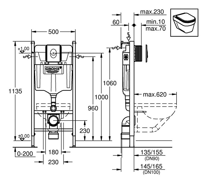 Унитаз подвесной с бачком и инсталляцией Grohe 39116000Gr