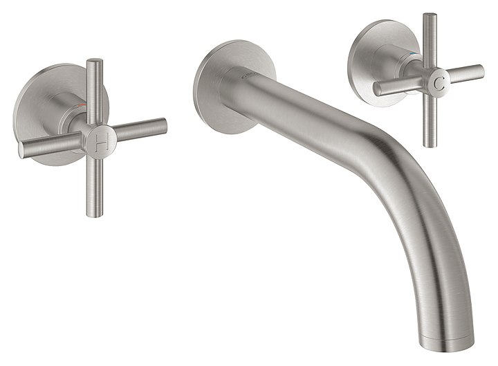 Смеситель для раковины Grohe Atrio 20164DC3 предназначен для использования в кухонных и ванных помещениях для подачи горячей и холодной воды. Серия Atrio отличается лаконичным дизайном, элегантностью и ручной сборкой смесителей. Модель оснащена двумя крестообразными рукоятками. Корпус имеет покрытие StarLight, устойчивое к царапинам и обеспечивающее сохранность поверхности на много лет, литые рукоятки выполнены из металла. В комплект поставки входят 2 набора с накладными насадками, из которых один - с надписями "H" и "C", другой - без надписей, и набор верхней монтажной части для 29 025 002. Особенности: