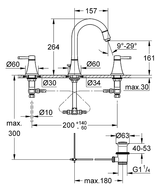Смеситель для раковины Grohe Grandera DN 15 M-SIZE 20389000 предназначен для использования в кухонных и ванных помещениях для подачи горячей и холодной воды. Современная и практичная коллекция Grandera гармонирует с широким спектром оборудования и предметов интерьера для ванной комнаты. Модель оснащена двумя длинными рукоятками. Корпус имеет покрытие StarLight, устойчивое к царапинам и обеспечивающее блеск на много лет. Особенности: