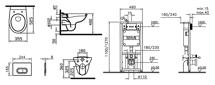 Унитаз подвесной с инсталляцией и сиденьем Vitra Normus 9773B003-7201