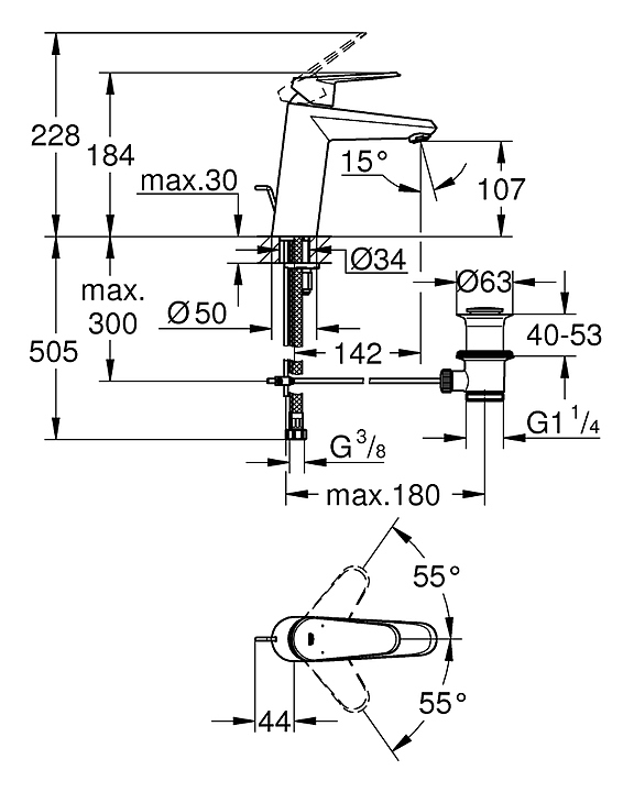 Смеситель Grohe Eurodisc Cosmopolitan DN 15 M-SIZE 23448002