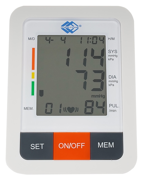 Тонометр Med-Mos PG-800B31 с РУ используется в домашних условиях и в учреждениях здравоохранения для измерения артериального давления (АД) и частоты пульса с целью контроля состояния сердечно-сосудистой системы. Модель оснащена ЖК-дисплеем с крупными цифрами и индикатором сердцебиения, который мигает в ходе измерения. Прибор поставляется с регистрационным удостоверением. Особенности:
