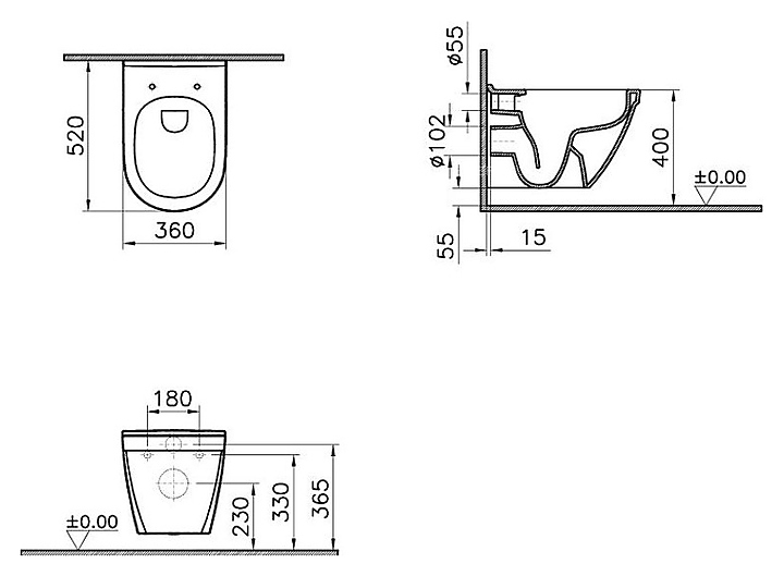 Унитаз подвесной с инсталляцией и сиденьем Vitra S50 9003B003-7201