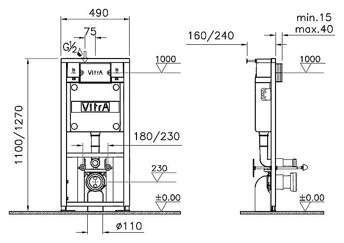 Унитаз подвесной с инсталляцией и сиденьем Vitra Arkitekt 9005B003-7211