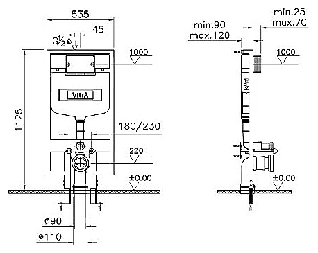Унитаз подвесной с инсталляцией и сиденьем Vitra Zentrum 9012B003-7206