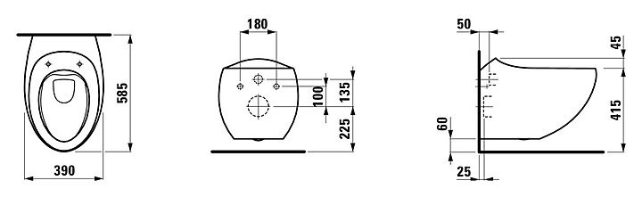 Подвесной унитаз LAUFEN IlbagnoAlessi One 8.2097.1.400.000.1 выполнен в современном стиле. Формы, актуальные в любые времена и намек на экстравагантность элементов коллекции IlbagnoAlessi One создают дизайн, имеющий успех уже на протяжении нескольких лет. Благодаря подвесной конструкции унитаз не занимает много места в помещении, а свободное пространство под чашей делает уборку в ванной комнате гораздо легче. Безободковое исполнение позволяет предотвратить скопление бактерий и грязи на внутренней поверхности чаши и обеспечивает ее чистоту и гигиеничность использования. Изделие выполнено из санфарфора с покрытием LCC (LAUFEN Clean Coat), который обладает повышенной прочностью и устойчивостью к негативным внешним факторам, а также долгое время сохраняет идеальную белизну и не впитывает запахи и грязь. Особенности: